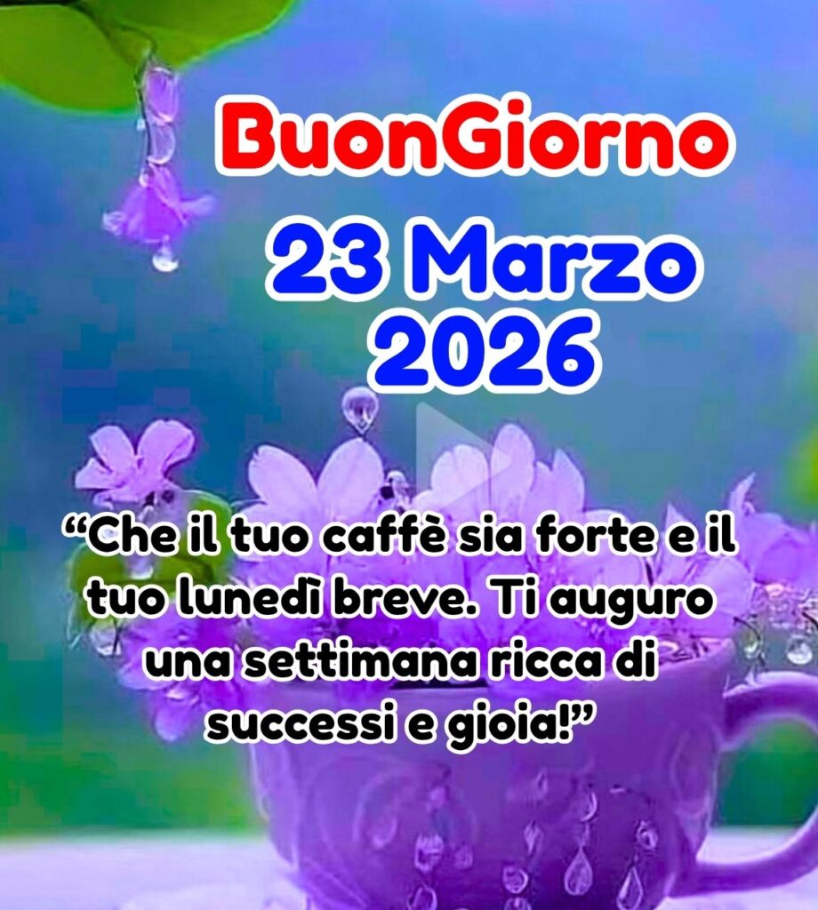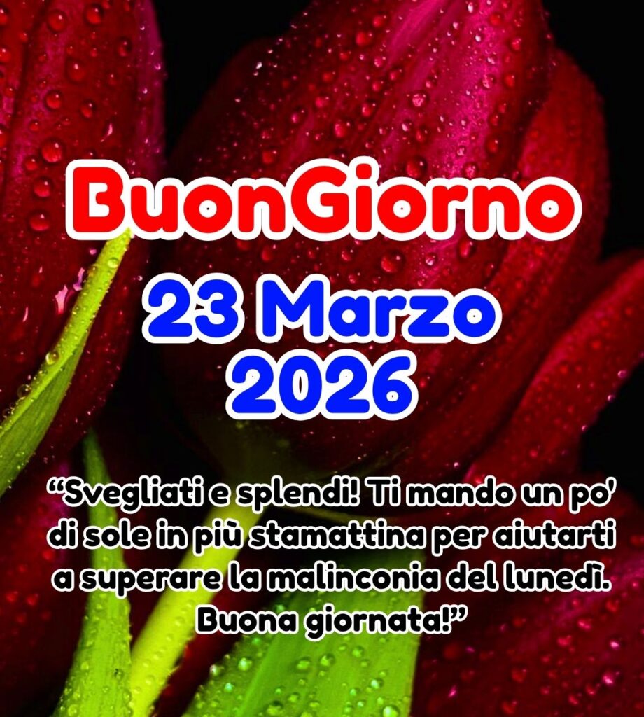 Se anche voi volete creare una routine quotidiana speciale e importante per i vostri amici e familiari, Allora dovete condividere questo Buongiorno Buon Lunedi 23 Marzo 2026 con i vostri amici o familiari in modo che anche loro possano usare le immagini di buongiorno che presentiamo gratuitamente e trarne vantaggio, in modo da poter migliorare ulteriormente la loro routine quotidiana e svolgere qualsiasi lavoro più facilmente. Questo buongiorno vi porterà verso una nuova direzione nella vostra vita…